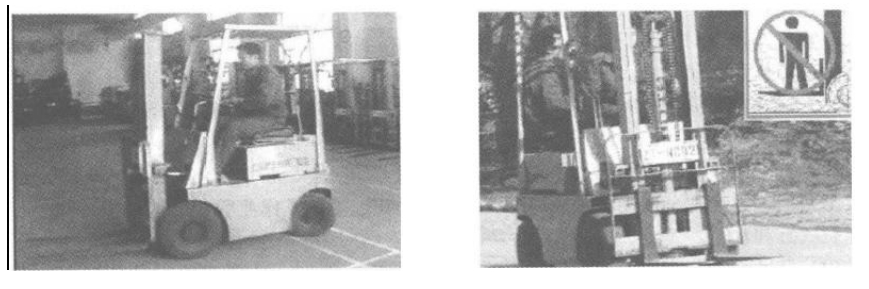 禁止在配重上載人,貨叉下站人,或用貨叉送人登高。