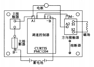 新牛頓叉車將柯蒂斯速控制器用于電動堆高車、蓄電池牽引車上,其工作電壓40V,最大允許電流 175A~275A,5min 額定電流 130A~200A,1h 工作電流75A~125A,柯蒂斯控制器的結(jié)構(gòu)如下圖所示。