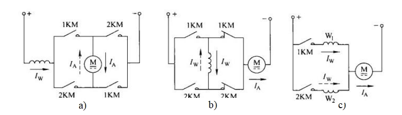 根據電磁轉矩的公式 T=KφI,我們可以發現通過改變電樞電流 I 或磁通 φ 的方向,可以改變電磁轉矩的方向;然而改變電樞電流和磁場方向的同時卻無法改變電磁轉矩的方向。因此,串勵電動機的反轉常常通過換向開關或其他電氣設備來實現,將電樞或勵磁繞組反接或換接。在實際應用中,常采用電樞反接法或勵磁繞組反接法,而不是換接勵磁繞組法。
